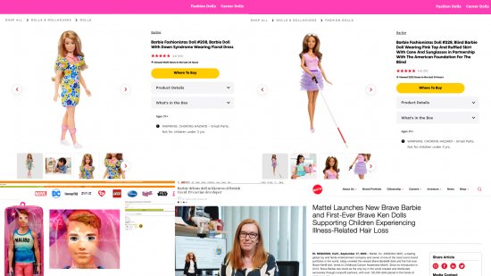 […] Obecnie lalka dołącza do swoich niepełnosprawnych i upośledzonych sióstr, wśród których są Barbie z zespołem Downa, niewidoma Barbie, homoseksualna Barbie, Barbie z cukrzycą, łysa Barbie chorująca na raka po chemioterapii, Barbie z wstrzyknięciem szczepionki przeciw COVID-19 oraz Barbie i Ken z bielactwem (Ken to męska wersja Barbie).