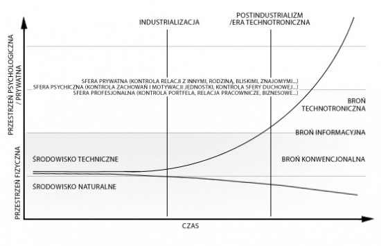 W erze postindustrialnej środowisko techniczne poprzez obiekty informacyjne (kamery, komputery, telefony, internet itd.) staje się pośrednikiem we wszystkich relacjach człowieka ekspandując na kompletnie nowe obszary sfery prywatnej jednostek obejmując: - sferę prywatną (kontrola relacji z innymi, rodziną, bliskimi, znajomymi...) - sferę psychiczną (kontrola zachowań i motywacji jednostki, kontrola sfery duchowej, etycznej i sumienia...) - sferę profesjonalną (kontrola portfela, relacja pracownicze, biznesowe...)