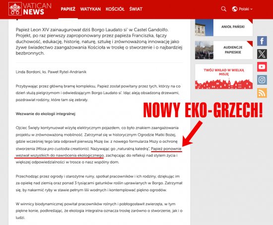 Plan ten pojawia się w czasie, gdy Papież Leon XIV przeprowadził w ubiegłym miesiącu ceremonię otwarcia wioski Laudato Si w Castel Gandolfo. Leon osobiście zatwierdził homoseksualnego „żonatego” mężczyznę, Artura Smitha, celebrytę z Chicago, który wcześniej gotował dla Oprah Winfrey, do nadzorowania usług gastronomicznych w placówce.