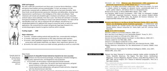 Dalej rozpatrywano transfer świadomości do robotów. Miał tym się zajmować dr. David Hanson z Hanson Robotics, który tworzył wcześniej robota Bina48 dla transhumanistyczno okultystycznej grupy Terasem.