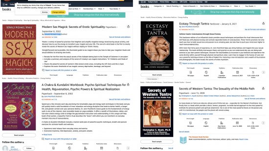Sam Epstein kupował książki powiązane z tantrą (EFTA02551241) i magią seksualną OTO (EFTA02551598) oraz pisał o orgazmicznych medytacjach i jodze kundalini (EFTA00925754, EFTA02527491). Z wyciągów zakupów na Amazon widać, iż zakupił m.in. książki „Secrets of Western Tantra: The Sexuality of the Middle Path”, Christophera S. Hyatta, „Modern Sex Magick: Secrets of Erotic Spirituality”, Donalda Michaela Kraiga, „A Chakra & Kundalini Workbook: Psycho-Spiritual Techniques for Health, Rejuvenation, Psychic Powers & Spiritual Realization”, Jonn Mumforda; „Ecstasy Through Tantra”, Jonn Mumforda.