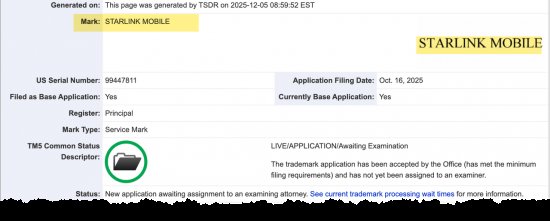 16 października Starlink zgłosiło wniosek o zarejestrowanie znaku towarowego „Starlink Mobile”. Wniosek został odkryty przez jednego z użytkowników serwisu X w rejestrach Urzędu Patentowego Stanów Zjednoczonych (USPTO):