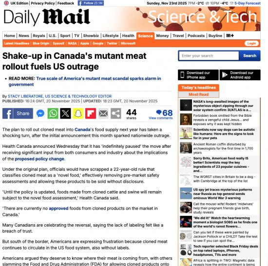 W posunięciu, które wywołało ostrą debatę, Health Canada bezterminowo zawiesiła plany zezwolenia na sprzedaż klonowanego mięsa w krajowym łańcuchu dostaw żywności, ulegając przytłaczającemu sprzeciwowi społecznemu i branżowemu.