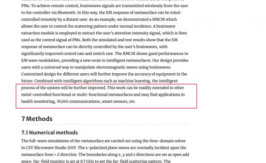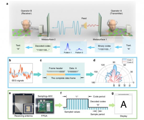 Naukowcy opracowali łączenie reprogramowalnych elektromagnetycznych metapowierzchni (EM) z interfejsem mózg-komputer (BCI). Dzięki temu odkryciu programowane metapowierzchnie mogą być dynamicznie strojone do pracy mózgu użytkowników i za pomocą komunikatów mózgowych oraz bezprzewodowo użytkownicy mogą przesyłać komunikaty pomiędzy sobą.